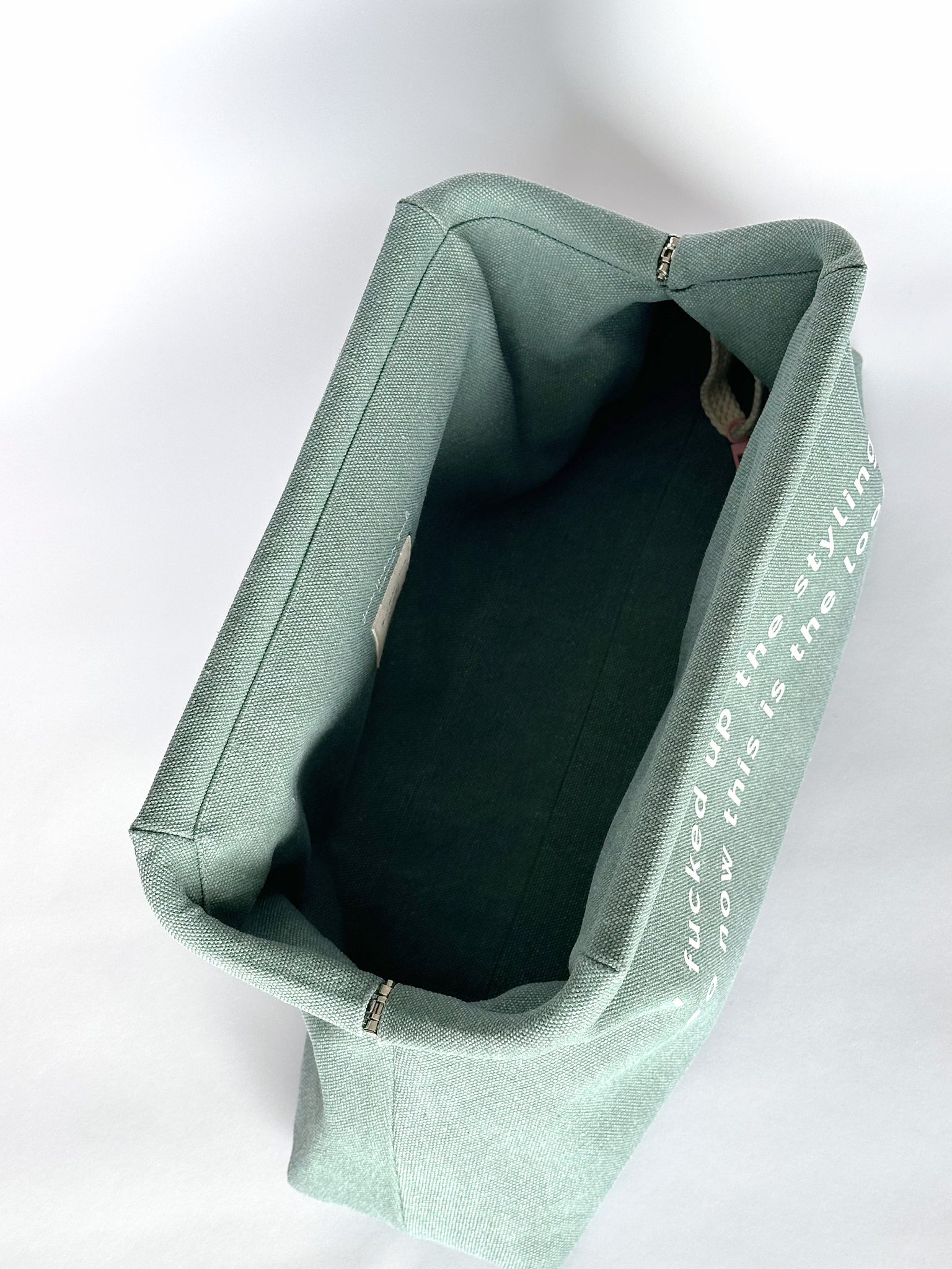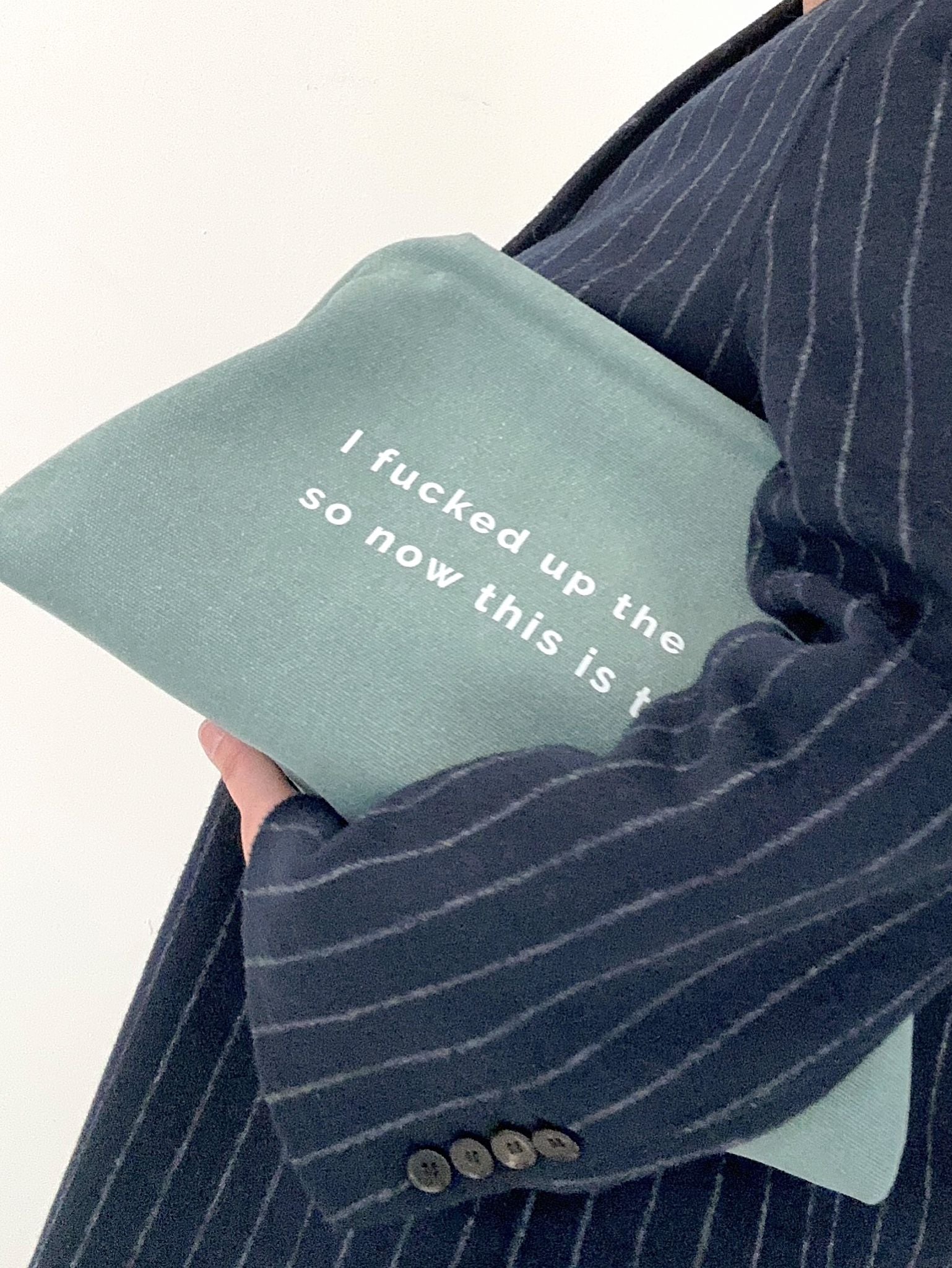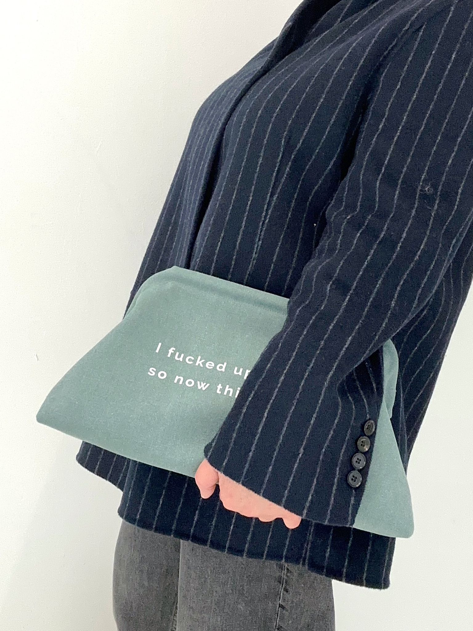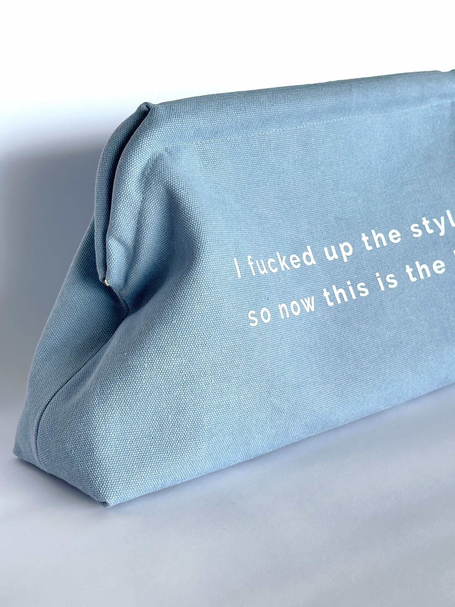 - printed phrase: “i fucked up the styling so now this is the look”