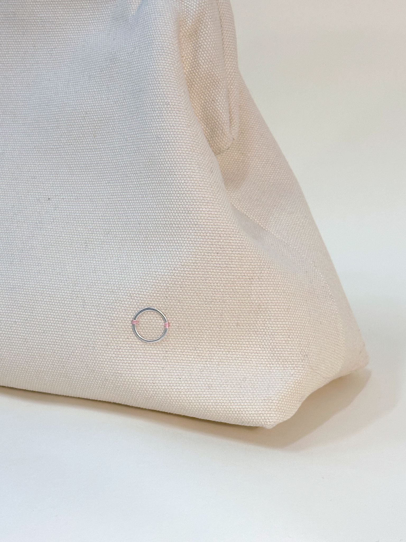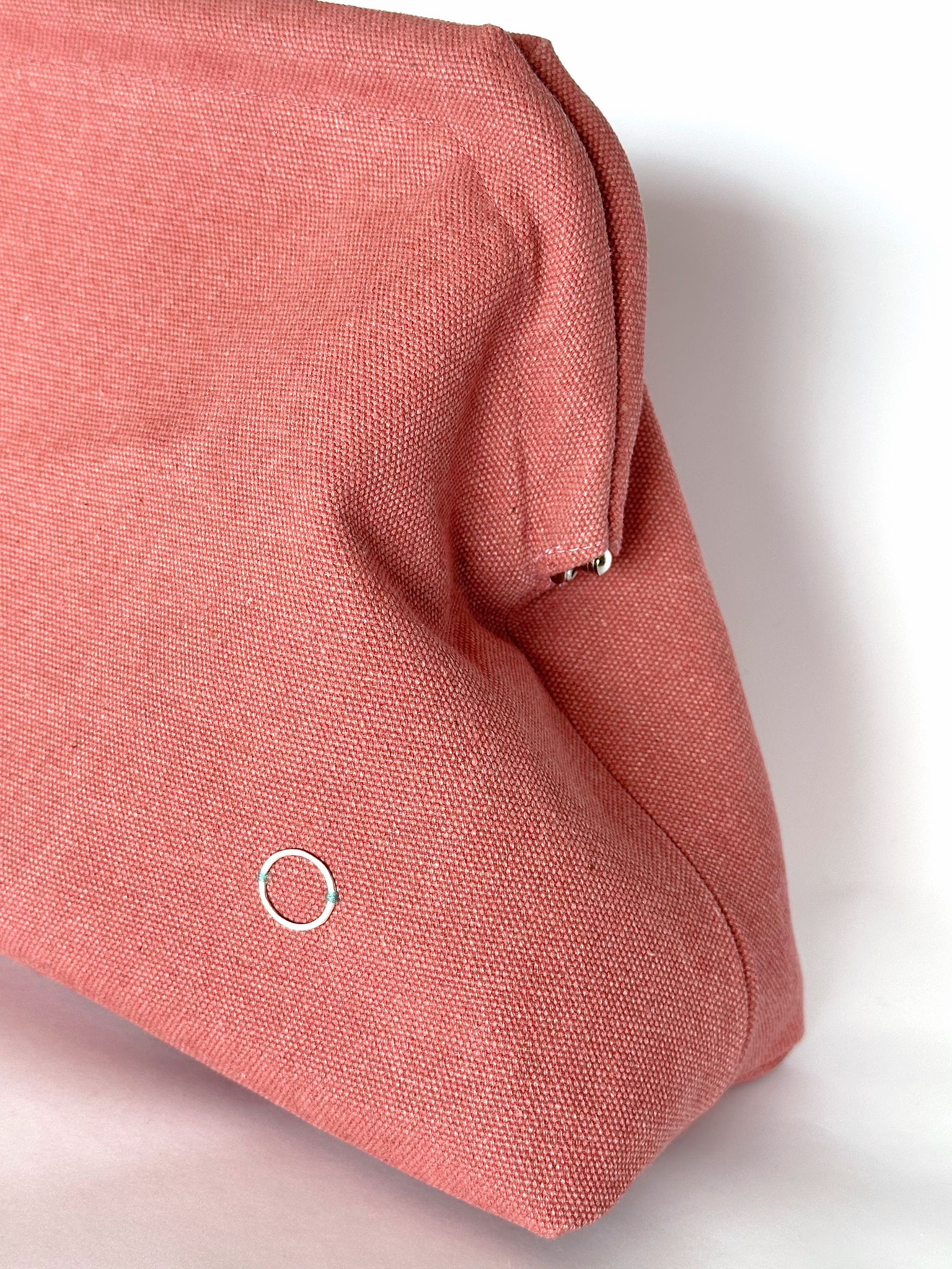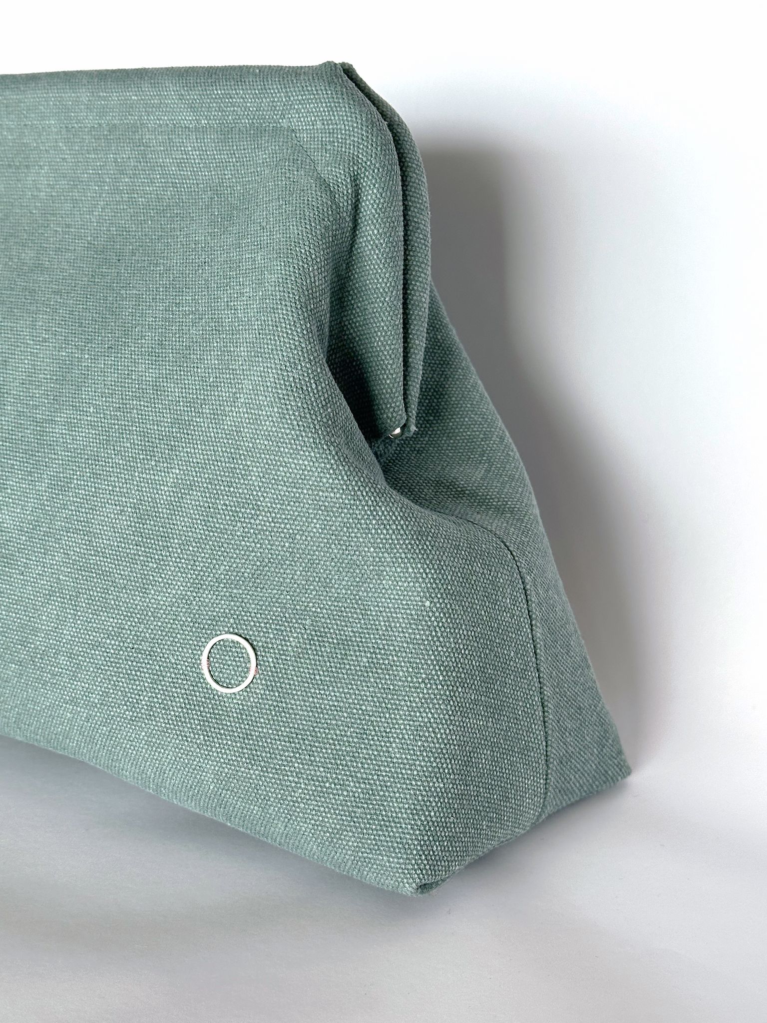 - elegant clutch crafted from raw cotton canvas, with a durable snap closure